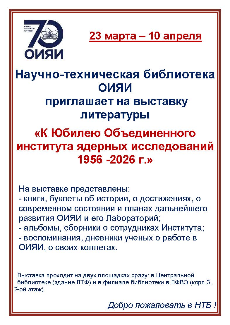 19.02.2025 C 7-21 февраля Научно-технической библиотека ОИЯИ приглашает на выставку литературы,